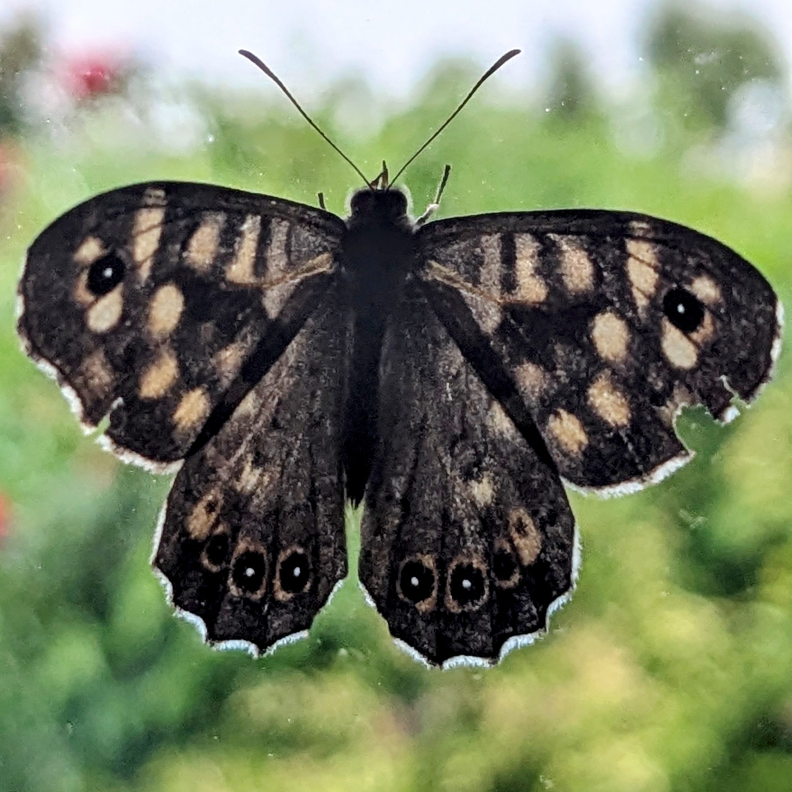 As insects aren’t really my thing, I haven’t labelled them. I can provide dates and ID of the flowers they’re visiting to anyone interested. I only pictured what was of interest on the day so you’ll notice a lack of flies, midges, hoverflies, and cabbage white butterflies. For example, this Speckled Wood butterfly Pararge aegeria arrived on my kitchen window shortly after I found a spotter sheet from the Wildlife Trusts, so I was soon able to name it!